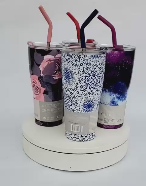 NewFloral Stainless Steel 590ml Double Tumbler with Steel Straw (Mix/Random colour)